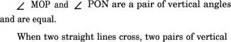 angles are formed. Pairs of vertical angles are equal. BISECTING ANGLES To bisect an angle merely means to divide the angle into two equal angles. his may be done by use of a compass. Problem: