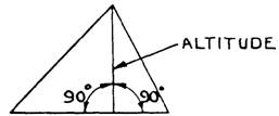 Altitudes and Medians The altitude and median of a triangle are not the same; the difference is pointed out in the following definitions: 1. The altitude of a triangle is a line drawn from the vertex, perpendicular to the base.