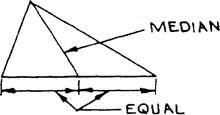 2. The median of a triangle is a line drawn from the vertex to the midpoint of the base.