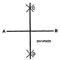 Figure 2-6.-Scribing an acr/circle with dividers need a right angle for a layout. Breakout your dividers, a scriber, and a straightedge. Draw a base line like the one labeled AB in figure 2-8. Set the dividers for a distance greater than one-half AB; then, with A as a center, scribe arcs like those labeled C and D. Next, without changing the setting of the dividers, use B as a center, and scribe another set of arcs at C and D. Draw a line through the points where the arcs intersect and you have erected perpendiculars to line AB, forming four 90-degree, or right, angles. You have also bisected or divided line AB into two equal parts. Constructing a right angle at a given point with a pair of dividers is a procedure you will find useful when making layouts. Figure 2-9 shows the method for constructing a right angle at a given point.