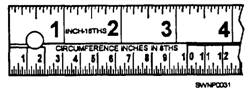 Figure 2-14.-Circumference rule. reading would be the circumference of a circle with a diameter of 3 inches and would be the length of a stretch-out for a cylinder of that diameter. The dimensions for the stretch-out of a cylindrical object, then, are the height of the cylinder and the circumference. |