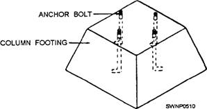 ANCHOR BOLTS Anchor bolts (fig. 3-6) are cast into the concrete foundation. They are designed to hold the column bearing plates, which are the first members of a steel frame placed into position. These anchor bolts must be positioned very carefully so that the bearing plates will be lined up accurately. BEARING PLATES The column bearing plates are steel plates of various thicknesses in which holes have been either drilled or cut with an oxygas torch to receive the