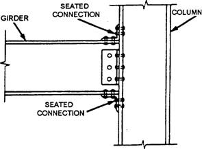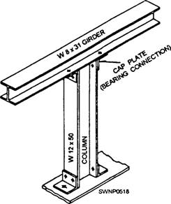 column and are usually connected on top of the columns with CAP PLATES (bearing connections), as shown in figure 3-14. An alternate method is the seated connection (fig. 3-15). The girder is attached to the flange of the column using angles, with one leg extended along the girder flange and the other against the column. The function of the girders is to support the intermediate floor beams.