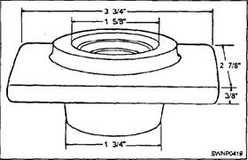 Figure 10-9.-All FNl flanged nut. The KPI KEEPER PLATE (fig. 10-10) is made from a plate 3 3/4" long, 2 1/8" wide, and 3/16" thick. The plate is cut out to fit over four of the hexagonal flats on the A6B bolt head. After final tightening of a bolt in a pontoon structure, the keeper plate is positioned around the bolt head and skip-welded to the underlying assembly plate or angle. This prevents the bolt from working loose during operations. To reduce maintenance problems, you should use the keeper plate on the bottom of pontoon structures where daily inspection is impractical. Keeper plates should not be welded to the bolt head. Steel PLATES of various shapes are used in the assembly of pontoon structures mostly to reinforce those areas that are subjected to maximum stress and shear. A number of different types of assembly plates are shown in figure 10-11. Each of the plates shown is designed for a specific application, as indicated below. API CONNECTING PLATE: The AP1 is a steel plate with four drilled holes for A6B assembly bolts. It reinforces the A6B bolts that hold pontoon strings to each other in completed structures that use either 6" or 8" angles. AP3 LAUNCHING ANGLE PLATE: When pontoon structures are to be side-loaded on an LST, an accessory known as an LA1 launching angle is attached. The AP3 is a steel plate that is used to attach the LA1 to the structure. The AP3 has four drilled holes for A6B bolts, and a curved plate is attached to form a semicylindrical pad. The pad serves as a fender to protect the hull of the LST on which the pontoon structure is side-loaded.
