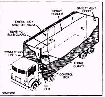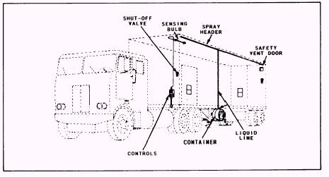Spray Systems In the expendable refrigerant s ray system, liquid nitrogen or carbon dioxide is sprayed directly into the vehicle space that is to be cooled. This system. uses liquid containers, a control box, a fill box, spray headers. emergency switches. and safety vents. The fill box is normally located on the front of the vehicle. It contains the valves, gauges, and connections that allow the liquid containers to be filled. The liquid containers are insulated cylinders similar to thermos bottles. The control box contains the valves, gauges, and thermostats that are necessary for safe release of the liquid to the spray headers. Once the liquid is received at the spray headers, the nozzles spray it into the vehicle. The remaining two components are primarily safety devices. These emergency interlock switches are attached to each door. Thus, whenever a door is opened, the system shuts down. The safety vent is a small trapdoor that vents air directly to the atmosphere whenever the air inside the truck box exceeds atmospheric pressure. A benefit of this system is that liquid nitrogen or carbon dioxide replaces the oxygen inside the space being refrigerated. Therefore when fruits, vegetables, meats, and fish are being refrigerated, they are also preserved by the inert atmosphere. A vehicle equipped with this type of system must display the following safety sign: CAUTION: THE TEMPERATURE OF LIQUID NITROGEN, AS IT COMES FROM THE SPRAY NOZZLES, IS BELOW (0F. Liquid nitrogen will instantly freeze any part of the human body that it touches. Since liquid nitrogen can be dangerous, you should always inspect the refrigerated space before closing the doors. An expendable spray system for a refrigeration truck is shown in Figure 14-6. In this system, the liquid nitrogen is in an insulated container that is installed vertically inside the truck body. Another similar type of spray system with the refrigerant container mounted horizontal under the truck body is shown in figure 14-7. THERMOELECTRIC REFRIGERATION SYSTEM This type of system is used to move heat from one area to another by use of electrical energy. The electrical energy, rather than the refrigerant, serves as a "earner." The primary use of thermoelectric systems has been in portable refrigerators, water coolers, cooling of scientific apparatus used in space exploration, and in aircraft. The main advantage of this system is there are no moving parts. The system is compact, quiet, and requires little service. MULTISTAGE REFRIGERATION SYSTEM Multistage refrigeration systems are used where ultralow temperatures are required but cannot be obtained economical] through the use of a single-stage system. The reason for this is the compression ratios are too high to attain the temperatures required to evaporate and condense the vapor. There are two general types of -systems presently in use- cascade and multistage (compound.) Cascade System The cascade system has two separate refrigerant systems interconnected in such a way that the evaporator from the first unit cools the condenser of the second unit. This allows one of the units to be operated at a lower temperature and pessure than would otherwise be possible with the same type and size of single-stage system. It also allows two different refrigerants to be used, and it can produce temperatures as low as -250F. Refer to figure 14-8. In this typical cascade system, condenser B of system 1 is being cooled by evapor ator C of system 2. This arrangement enables ultralow temperatures in evaporator A of system
