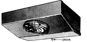 unit shown in 14-16, the motor drives two propeller-type fans and the cool air exits at both ends of the evaporator. Figure 14-17 shows a lowvelocity blower evaporator. In this type of evaporator, the air enters at the two fan grills and exits on both sides. Figure 14-18 shows a lowtemperature blower evaporator. The lowtemperature evaporator has two axial-flow fans and an electric defrost. |
