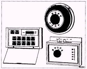 THERMOSTATS The thermostat is a control that responds to changes in temperature and directly or indirectly controls the temperature. There are many different designs of thermostats. Figure 14-20 shows a few of the common thermostats used in modem heating and cooling systems. Thermostats are of three types: heating, cooling, and dual (combined heating and cooling thermostat in one). Figure 14-20(B).