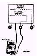 shell of the unit. Either the starting winding, the running winding, or both can be affected. The ground is either one of low resistance or one of high resistance. A low-resistance ground is indicated when fuses blow repeatedly and the motor fails to start. A high-resistance ground is shown by an occasional blown fuse, but more often, by the opening of the overload protector. Three methods of testing windings for grounds are the ohmmeter continuity test, the test lamp continuity check, and the resistance measurement with a megohmmeter. The procedure to follow in making each of these tests is provided below. Ohmmeter Continuity Test (Low-Resistance) Procedure To perform an ohmmeter continuity test, proceed as follows: Disconnect the power and remove the wires from the motor terminals. Scrape off paint and clean a spot on the motor-compressor shell for testing.