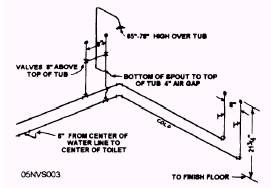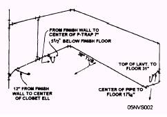 Figure 4-1(B).-Waste and vent. ability to read and interpret them. Imagine using only written instructions for the construction of a small building. It would take volumes of written material. Trying to understand and visualize all the details involved in a construction project would present a very difficult problem for anyone. For this reason, prints are used. They are also used by the supervisor to monitor the progress of construction. You must be able to interpret the details, perform the work, and follow directions from these drawings. You must be capable of reading prints and passing along the information contained on the drawings. Figure 4-1(A) shows a typical bathroom. Compare the relationship between