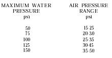 Dry Pipe Valves and Air Check Valves Air check valves are special, small, dry pipe valves that are usually connected to a wet pipe system. The alarms are actuated at the wet pipe system riser when the air check valve "trips." To prevent premature operation, the valves should be fitted with an air chamber to maintain at least 50 gallons of air in the chamber and on the system. Perform the 2-inch drain test quarterly by opening the 2-inch drain valve fully and recording the pressure at the lowest point. Close the 2-inch drain valve and record the pressure at the stabilization point. Notice whether pressure returns quickly or slowly. Maintain a continuous record of drain tests. If the recorded pressure when the valve is wide open is similar to previous recordings and pressure returns quickly, it is normal. If recorded pressure when the valve is wide open is significantly lower or pressure is slow to return when the valve is closed, there may be an obstruction in the waterway. Check for partially closed valves to the sprinkler system. Because dry pipe sprinkler systems are installed in areas where temperatures are expected to drop below freezing, all parts of the system must be airtight and kept free of water. Complete drainage is essential. Each fall, before freezing season comes, check the pitch of all piping carefully using a spurt level to detect dips and small pockets in the lines. Check for broken, loose, or missing hangers; and water in low point drains. Check air and water pressures weekly. If air pressure losses exceed 10 psi, check the entire system for tightness and eliminate air leaks. Principal checking methods are as follows: . Put a strong smelling oil, such as oil of peppermint, into the air supply. This will produce a strong odor at the point of leakage. . Paint fittings with a soapy water solution and watch for bubbles. Check the temperature of valve enclosure and maintain a temperature above 42F. Make certain that the valve between the intermediate chamber and the alarm devices is open on dry pipe valves. Check drip valves at intermediate chambers, making certain that clappers or balls are in a position to allow drainage. This is done by lifting push rods or by inserting a pencil in the opening. Water leakage through this valve is an indication that the water clapper is not holding tightly to the seat. Check the air pressure. The air pressure versus water pressure for differential dry pipe valves should be as outlined in table 8-3 unless otherwise specified by the manufacturer's operating instructions. Certain mechanical dry pipe valves are designed to trip at a fixed pressure of 10 to 15 psi. Maintain 30 psi air pressure on these valves. Basic inspections for accelerators and exhausters include the following: . Check air pressure. The system and the quick-opening device air pressure should be the same. . Relieve excess pressure in the quickopening device by opening bleeder valves or loosening air gauges. If the system pressure is high, relieve the excess pressure through the priming water test valve. Close the valve as soon as pressures balance. To avoid the possibility of tripping the dry pipe valve, do not open the priming test valve more than one turn and keep the valve to the quick-opening device closed while the priming test valve is open. To make sure that dry pipe valves will operate effectively in fire situations, they should be trip-tested annually as follows: 1. Close the main control valve. 2. Open the 2-inch drain. 3. Open the main control valve until 5 psi pressure shows on the water gauge. 4. Close the 2-inch drain valve slowly. 5. Open the inspector's test connection of the system. Where there is no test connection, use the most remote low point drain. 6. As soon as the dry pipe valve trips, close the main control valve and open the 2-inch drain. This is particularly important in permanently cold areas. 7. Record initial air and water pressures, air pressure at the trip point, and time required for tripping. 8. Examine and clean the dry pipe valve interior. Replace facings and gaskets if needed. 9. Reset the dry pipe valve and the open control valve. 10. When a dry pipe valve fails to trip or when a clapper fails to latch in the open position, notify the person responsible for fire protection so that a qualified sprinkler contractor may be contacted. To test dry pipe valves you should do the following: 1. Close the main control valve and open the 2-inch drain valve and low point drain valves. Table 8-3.-Differential Dry Pipe Valve Air Pressure Specifications
