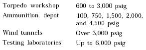 HIGH-PRESSURE SYSTEMS These systems provide compressed air within the range of 400 to 6,000 psig pressure. Hazards that increase with higher pressures and capacities can be minimized by the use of separate compressors for each required pressure. Systems operating at 3,000 psig may require small amounts of air at lower pressures, which is supplied through pressure-reducing stations. Caution must be used with high-pressure systems because when high-pressure air enters suddenly into pockets or dead ends, the air temperature in the confined space increases dramatically. If there is any combustible material in the space and the air temperature increases to the ignition point of the material, an explosion may occur. This is known as auto ignition or diesel action. Explosions of this type may set up shock waves that travel through the compressed air system. This travel may cause explosions at remote points, Even a small amount of oil residue or a small cotton thread may be sufficient to cause ignition. Some common pressure requirements for high-pressure systems may be as follows: