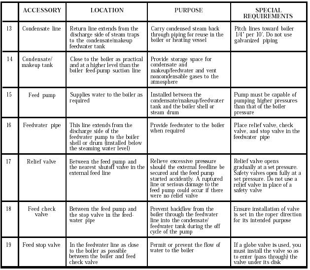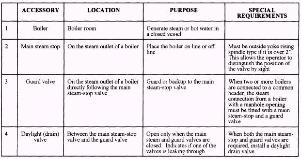 ACCESSORIES As you review table 12-1, open the fold out figure 12-1 on page 12-5 for identification of the boiler accessory equipment. Table 12-1.-Boiler Accessories