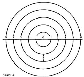 Figure 12-2.-Flve 1-cm energy waves represented as concentric circles around the wave emitttcr.Thus, radar waves can be described either in terms of frequency or wavelength. The two are related by the following equation: FREQUENCY = : where k is the wavelength and c is the speed of light (300,000,000 meters per second or 3 x 108). This information is now available on CD in Adobe PDF Printable Format |