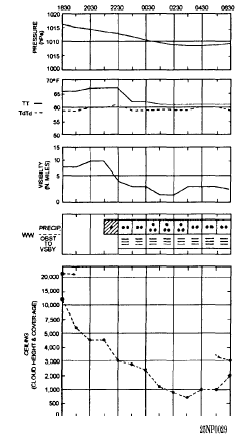 Figure 4-13.-Trend chart suggested format. previously described. Time-liners are especially useful for isochrone analysis and follow-on extrapolation. Inasmuch as a majority of incorrect short-range forecasts result from poor timing of weather already upstream, an aid, such as described below, may improve this timing.This information is now available on CD in Adobe PDF Printable Format |
