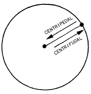 Figure 3-1-10.Simplified illustration of centripetal and centrifugal force. High- and low-pressure systems can be compared to rotating discs. Centrifugal effect tends to fling air out from the center of rotation of these systems. This force is directly propor-tional to the wind speed; the faster the wind, the stronger the outward force. Therefore, when winds tend to blow in a circular path, centrifugal effect (in addition to pressure gradient and Coriolis effects) influences these winds. Frictional Force The actual drag or slowing of air particles in contact with a solid surface is called friction. Friction tends to retard air movement. Since Coriolis force varies with the speed of the wind, a reduction in the wind speed by friction means a reduction of the Coriolis force. This results in a momentary disruption of the balance. When the new balance (including friction) is reached, the air flows at an angle across the isobars from high pressure to low pressure. (Pressure gradient force is the dominant force at the surface.) This angle varies from 10 degrees over the ocean to more than 45 degrees over rugged terrain. Frictional effects on the air are greatest near the ground, but the effects are also carried aloft by turbulence. Surface friction is effective in slowing the wind to an average altitude of 2,000 feet (about 600 meters) above the ground. Above this level, called the gradient wind level or the second standard level, the effect of friction decreases rapidly and may be considered negligible. Air above 2,000 feet normally flows parallel to the isobars. |