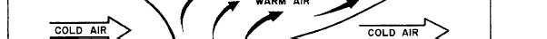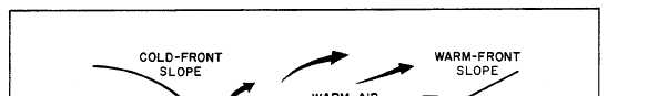 Click here to Order your Radar Equipment Online RELATION OF FRONTS TO AIR MASSESAt this point you should have figured out that without air masses there would be no fronts. The centers of action are responsible for bringing the air masses together and forming frontal zones. The primary frontal zones of the Northern Hemisphere are the arctic frontal zone and the polar frontal zone. The most important frontal zone affecting the United States is the polar front. The polar front is the region of transition between the cold polar air and warm tropical air. During the winter months (in the Northern Hemisphere), the polar front pushes farther southward, because of the greater density of the polar air, than during the summer months. During the summer months (in the Northern Hemisphere), the polar front seldom moves farther south than the central United States. On a surface map a front is indicated by a line separating two air masses; this is only a picture of the surface conditions. These air masses and fronts extend vertically. (See fig. 4-2-1.) A cold air mass, being heavier, acts like a wedge and tends to underrun a warm air mass. Thus, the cold air is below and the warm air is above the surface of discontinuity. This wedge of cold air produces a slope of the frontal surface. This slope is usually be-tween 1 to 50 (1 mile vertical for 50 miles horizontal) for a cold front and 1 to 300 (1 mile vertical for 300 miles horizontal) for a warm front. For example, 100 miles from the place where the frontal surface meets the ground, the frontal surface might be some-where between 2,000 feet and 10,000 feet above Earths surface, depending on the slope. The slope of a front is of considerable impor-tance in visualizing and understanding the weather along the front. RELATION OF FRONTS TO CYCLONES There is a systemic relationship between cyclones and fronts, in that the cyclones are usually associated with waves along fronts primarily cold fronts. Cyclones come into being or intensify because pressure falls more rapidly at one point than it does in the surrounding area. Cyclogenesis can occur anywhere, but in middle and high latitudes, it is most likely to occur on