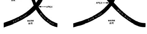 OUTLINE Cold occlusions Warm occlusions THE OCCLUDED FRONTS An occluded front is a composite of two A cold occlusion forms when the cold air in advance of a warm front is WARMER than the cold air to the rear of the cold front. The over-taking cold air undercuts the cool air in advance of the warm front. This results in a section of the warm front being forced aloft. A warm occlusion forms when the air in ad-vance of the warm front is COLDER than the air to the rear of the cold front. When the COLD air of the cold front overtakes the warm front, it moves up over this COLDER air in the form of an upper cold front. The primary difference between a warm and a cold type of occlusion is the location of the associated upper front in relation to the surface front (fig. 4-5-1). In a warm type of occlusion, the upper cold front precedes the
