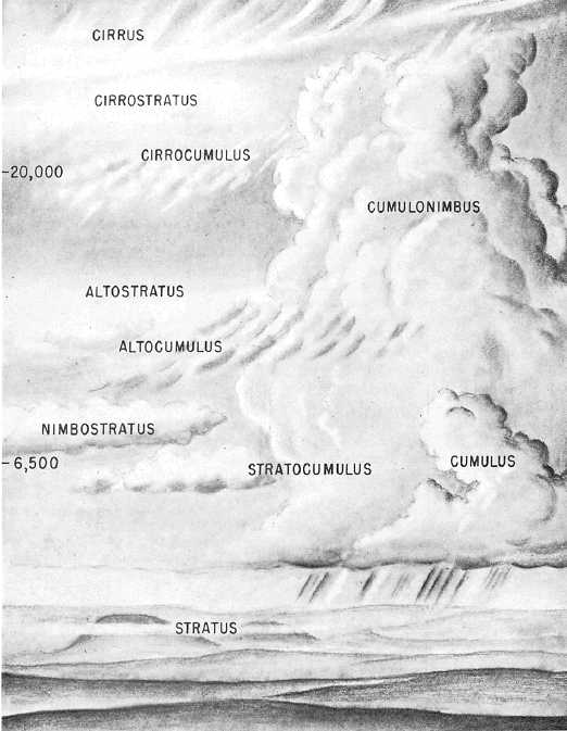 Click here to Order your Radar Equipment Online Species. The following species of clouds are referred to frequently; others may be found in the International Cloud Atlas or in the newer publication, which are generally taller than they are wide, are connected to a common base. The term applies mainly to cirrocumulus, altocumulus, and stratocumulus, but especially altocumulus. Stratiformis. Clouds which are spread out in an extensive horizontal sheet or layer. The term applies to altocumulus, stratocumulus, and oc-casionally to cirrocumulus.Lenticularis. Clouds having the shape of lenses or almonds, often elongated and having well-defined outlines. The term applies mainly to cirrocumulus, altocumulus, and stratocumulus.Fractus. Clouds in the form of irregular shreds, which have a clearly ragged appearance. The term applies only to stratus and cumulus. Humilis. Cumulus clouds of only a slight ver-tical extent; they generally appear flattened. Congestus. Cumulus clouds which are markedly sprouting and are often of great vertical extent. Their bulging upper part frequently re-sembles cauliflower.Varieties and Supplementary Features. Cloud varieties are established mainly on the basis of the clouds transparency or its arrangement in the sky. A detailed description of the nine varieties can be found in the clouds. The most common supplementary features are mamma, tuba, and virga. They are defined and associated with the parent clouds in the general section.Fog Fog is a cloud on Earths surface. It is visible condensation in the atmosphere. Fog varies in depth from a few feet to many hundreds of feet. Its density is variable resulting in risibilities from several miles to near zero. It differs from rain or mist in that its water or ice particles are more minute and suspended and do not fall earthward. The forecasting of fog is frequently a difficult task. In addition to knowledge of the meteorological causes of fog formation, it is necessary to have a thorough knowledge of local geography and topography. A slight air drainage (gravity induced, downslope flow of relatively cold air) may be enough to prevent fog forma-tion, or a sudden shift in the wind direction may cause fog to cover an airfield.The temperature to which air must be cooled, at a constant pressure and a constant water vapor content, in order for saturation to occur is the dew point. This is a variable, based upon the amount of water vapor present in the atmosphere. The more water vapor present, the higher the dew point. Thus, the dew point is really an index of the amount of water vapor present in the air at a given pressure.Temperature and dew point may be made to coincide either by raising the dew point until it equals the temperature of by lowering the temperature to the dew point.The former results from the addition of water vapor to the air by evaporation from water sur-faces, wet ground, or rain falling through the air.