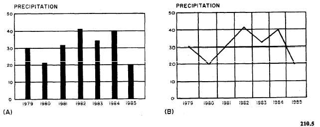 Figure 6-6-2.A comparison of the bar and line graph method of showing the
