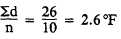 To compute the average deviation: 1. Add all the temperatures in column 2 and 2. In column 3, compute the deviation from the mean or average determined in step 1. (The mean temperature for the 10-year period was 51F.) 3. Total column 3, disregarding the negative and positive signs, (Total is 26.) 4. Apply the formula for average deviation: