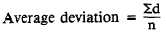 Click here to Order your Radar Equipment Online AVERAGE AND STANDARD DEVIATIONS In the analysis of climatological data, it may be desirable to compute the deviation of all items from a central point. This can be obtained from a computation of either the mean (or average) deviation or the standard deviation. These are termed measures of dispersion and are used to determine whether the average is truly representa-tive or to determine the extent to which data vary from the average.Average Deviation Average deviation is obtained by computing the arithmetic average of the deviations from an average of the data. First we obtain an average of the data, then the deviations of the individual items from this average are determined, and finally the arithmetic average of these deviations is computed. The plus and minus signs are disregarded. The formula for computation of the average deviation is as follows: