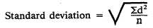 where d An example of the computations of average deviation and standard deviation is given in table 6-3-1 and in the following paragraphs. Suppose, on the basis of 10 years of data (1978-1987), you want to compute the average deviation of mean temperature and the standard deviation for the month of January. First arrange the data in tabular form (as in table 6-3-1), giving the year in the first column, the mean monthly temperature in the second column, the deviations from an arithmetic average of the mean temperature in the third column, and the devia-tions from the mean squared in the fourth column. Table 6-3-1.Computation of Average and Standard Deviation