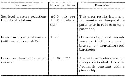 Click here to Order your Radar Equipment Online Representativeness of Data Even when all the probable errors in the report are accounted for, some elements of the report may still be inconsistent with corresponding elements of other reports nearby or within the same air mass. Such elements are said to be unrepresentative. Any meteorological element subject to purely local influences, such as heating or cooling, terrain, water sources, local con-vergence, and the like, is likely to be unrepresent-ative. Because ocean surfaces are more uniform horizontally than are land surfaces, you might expect ship reports to be more representative than continental reports. This is generally true, except in the vicinity of well-defined currents, eddies, and a few other areas well discuss later. Similarly, when you are comparing levels of the atmosphere, properties of air in the friction layer (lower than 2,000 feet) are more subject to local influences than are the corresponding properties aloft. The unrepresentativeness of elements in this layer is the principal reason you must look at more than just the surface chart when performing analysis. No surface analysis can be considered complete until it has been shown to be geometrically and meteorologically consistent with corresponding upper air analyses. Since surface or sea level data are observed at the base of the friction layer, where local influences are most effective, it is possible to find conditions under which each ele-ment of the surface report is nonrepresentative. The following section discusses the represent-ativeness of various meteorological elements. SEA LEVEL PRESSURE. Sea level pressures reported by stations at or near sea level are the most representative of all weather elements, although (especially in the case of ship reports) they are subject to error. Sea level pressures reported from mountain stations which extend well above the average sur-rounding terrain are not representative and must be disregarded when drawing the sea level pressure pattern. The reason for this lies in the fact that the average elevation of the surrounding stations is used in the pressure reduction computations and not the actual elevation of the station in question. As all stations above sea level must reduce their station pressures to sea level, it is important that you have a basic understanding of why and how this is done. First, the why. The greatest pressure changes occur as we move up and down in the atmosphere. For example, Leadville, Colorado is 10,158 feet above sea level. At that height, the pressure would be approximately 700 millibars. If Leadville could be lowered to sea level, the pressure would be approximately 1013.2 millibars. Thats a difference of over 300 millibars due to elevation alone. Because weather reporting stations are located at various elevations throughout the world, if these pressure dif-ferences were not eliminated, it would be almost impossible to make worldwide comparisons of pressure. Therefore, scientists agreed on sea level as the standard or fixed level.To a much lesser extent, but just as impor-tant, are the effects of temperature, density, and moisture content on pressure. These properties, along with a stations elevation, must be taken into account in reducing station pressure to sea level. The reduction process uses the hypsometric equation. The factors of the equation are station pressure, station elevation, and the mean virtual temperature of an assumed air column extending vertically downward into the earth to sea level. Because no such column exists or is possible, it is dubbed "fictitious," and the mean virtual temperature must therefore be derived from a combination of observed, assumed, and climatic properties; they are temperature, lapse rate, and humidity. These properties must closely resem-ble those occurring in the actual atmosphere in the vicinity of the station but at lower elevations. If they dont, the sea level pressure obtained will be in error and will not fit the sea level pressure pattern. The representativeness of any sea level pressure obtained in this manner is dependent on the representativeness of the fictitious air column used in computing it. The chances of correctly estimating the properties of the column decrease as the column increases in length. In other words, the higher the station above sea level, the greater the chance for error. Overestimates of the mean virtual temperature of the column result in sea level pressures that are unrepresentative on the low side and vice versa. Because of this, the intensity of thermal highs and lows in mountain and plateau regions is, to some extent, fictitious on surface charts. It is also the reason a level other than sea level is often used when constructing charts in these areas. Table 7-1-1 shows probable errors in pressure observations that can be used as a guide in analysis of sea level pressure. Table 7-1-1.Probable Errors