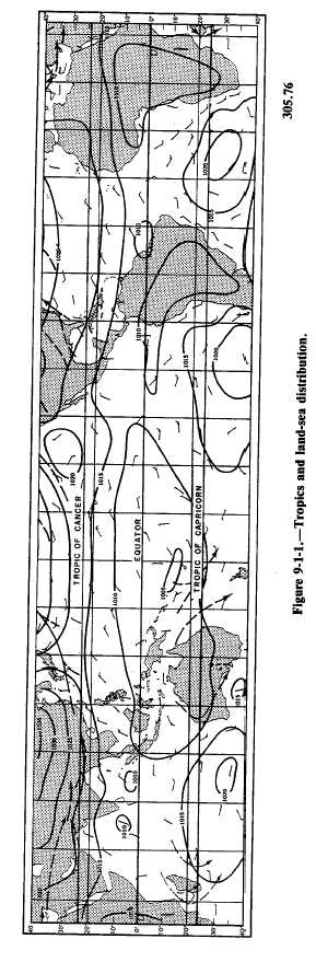 Click here to Order your Radar Equipment Online WEATHER DIFFERENCES WITHIN THE TROPICS The land-sea distribution within the geo-graphic tropics is illustrated in fig. 9-1-1. Note that most of this 47-degree stretch of latitude is oceanic, and that many islands and large portions of some continents are also found here. Topography and location play the significant roles in weather differences experienced in this belt, but migratory weather disturbances also contribute to daily and seasonal changes in the weather. We will Air Masses The tropics are the source region for equatorial