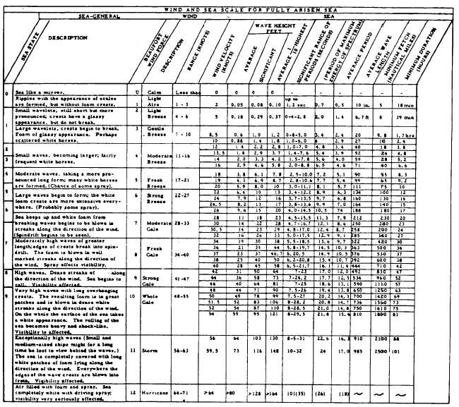 Figure 1-1-1.-Sea wave records. Table 1-1-1.-Wave and Sea Scale for a Fully Arisen Sea