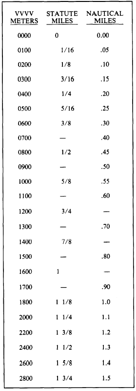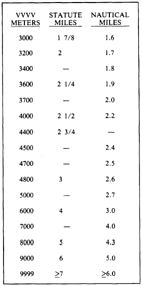 Table 4-4-1.-Visibility (VVVV) Reportable Values Continued