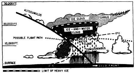Turbulence Characteristics Turbulence may be defined as irregular and instantaneous motions of the air that are made up of small eddies traveling in the current of air. Atmospheric turbulence is caused by random fluctuations in the flow of wind. Given a wind field with both streamlines and isotachs drawn Figure 6-1-2.-Icing zones along a cold front. smooth, any difference between the actual wind field and the smooth field is attributed to turbulence. To an aircraft in flight, the atmosphere is considered turbulent when irregular whirls or eddies of air affect the motion of the aircraft, and a series of abrupt jolts or bumps is felt by the pilot. The type of motion felt by the occupants of an aircraft is directly related to the size and intensity of the eddies in the atmosphere. When the eddies have a diameter smaller than the air-craft, a rapid upward and downward fluctuation is felt, similar to what you might feel in a car running over a series of two-by-fours on a road. This is often referred to by pilots as chop. When the eddies have a diameter about the same size or slightly larger than the size of the aircraft, a sharp downward and then upward jolt is felt within the aircraft, similar to that caused by running a vehicle through a pothole just longer than the length of the vehicle. When atmospheric eddies are encountered that are much greater than the size of the aircraft, a sudden dropping or climbing sensation is felt. This may be related to cresting a sharp hill in a rapidly moving car. The differences in intensity of turbulence are caused by the changes in vertical velocity between the ambient air and the air within an eddy, and may be equated to changes in the depth of a pothole in the road. As different vehicles will respond differently to road irregularities based on their weight and size, different size and weight aircraft will respond differently to similar situations in the atmosphere. Keep in mind the following guidelines: The effect of turbulence is directly proportional to the speed of the aircraft. A faster aircraft will feel turbulence more than a slower aircraft. The effect is inversely proportional to the weight of the aircraft. A heavier aircraft will feel less turbulence than a lighter aircraft. The effect is directly proportional to the wing area of the aircraft. An aircraft with a larger wing area will feel the same turbulence more than an aircraft with a smaller wing area. For pilots and aircrew, turbulence reporting is subjective at best. Judgment of turbulence severity is influenced by the factors listed above, by the time that the aircraft is in the turbulence, and by the attitude of the person reporting the turbulence (turbulence severity increases directly with the length of the crew day). The established turbulence-reporting criteria in table 6-1-1 are related to the effect of turbulence on the aircraft and its occupants. Many aircraft lack aadaquate equipment to measure rapid airspeed fluctuations or vertical gust velocities, so turbulence reported by the pilot is still an estimate. |