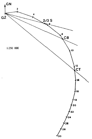 EFFECTIVE DOWNWIND DIRECTION. To determine the effective downwind direction (EDD), you must determine the sector angle formed between the radial lines GZ-CT and GZ-2/3 S and ground zero. If the angle is 40 degrees or greater, EDD is obtained by bisecting the angle. If the angle is less than 40 degrees,